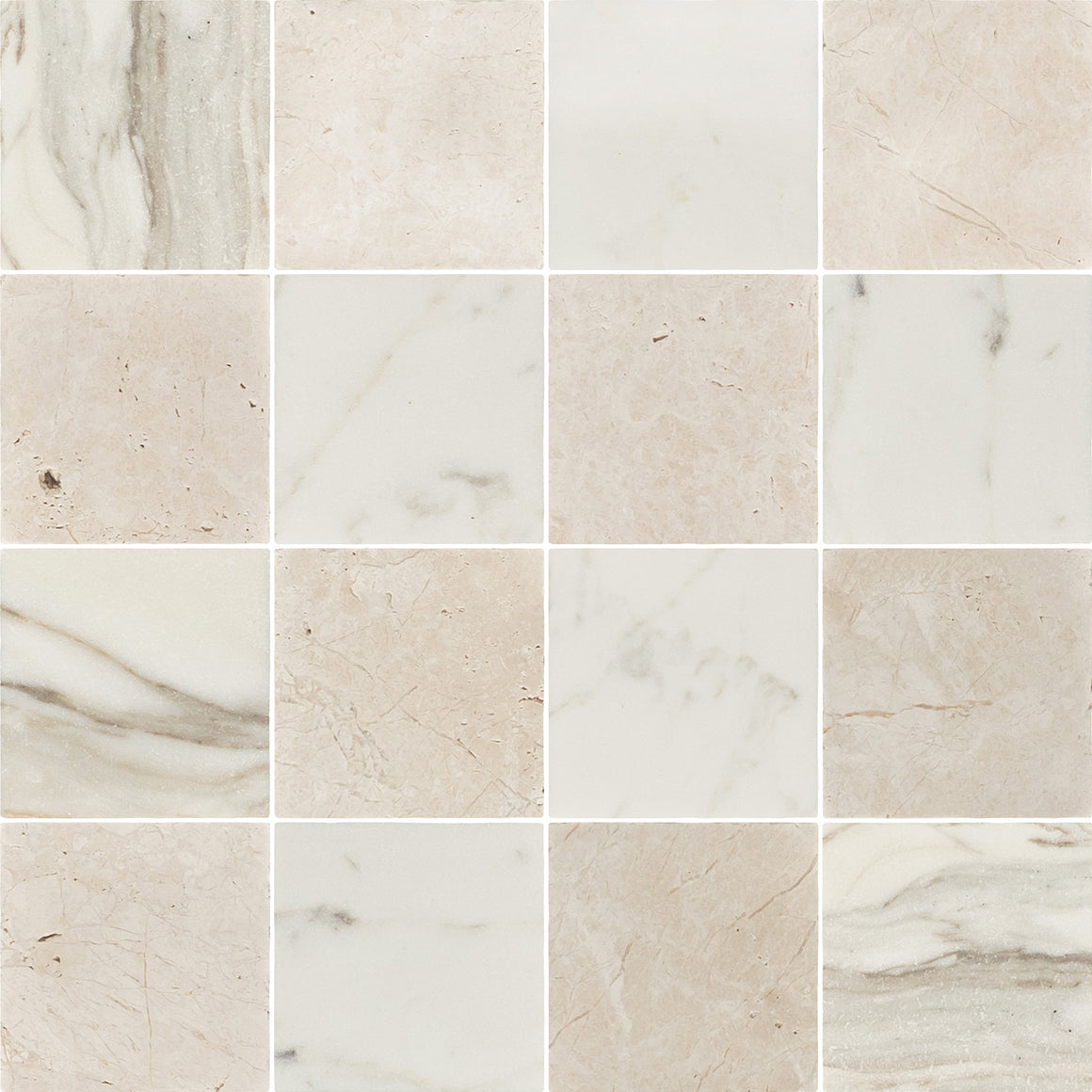 Calacatta Gold 4" x 4" Tumbled & Alba Nova 4" x 4" Tumbled Checkerboard Board