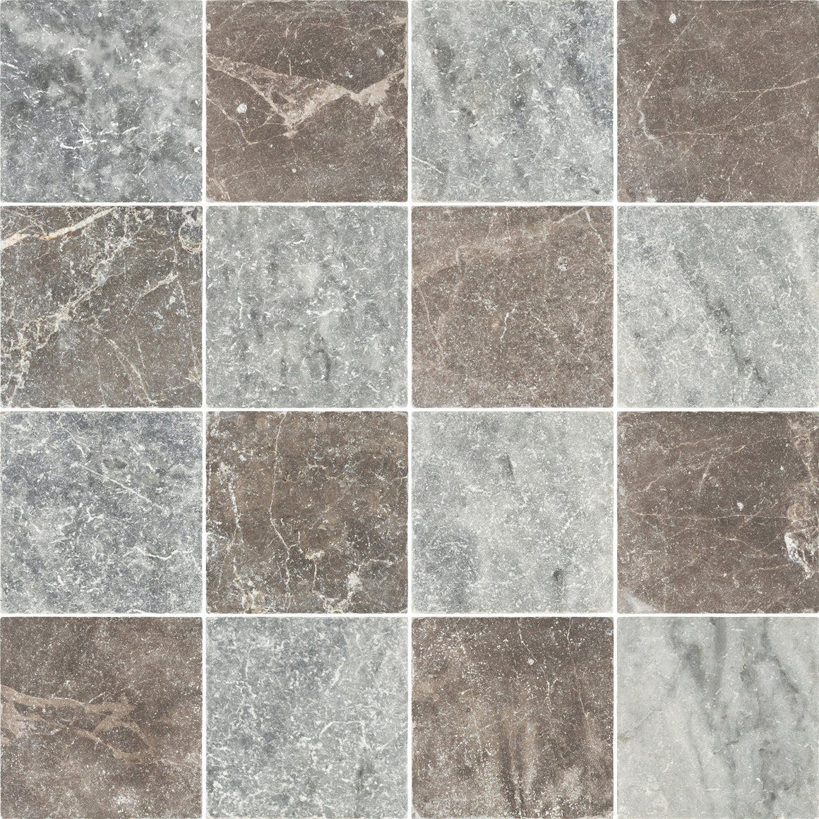 Bardiglio Nuvolato 4" x 4" Tumbled & Espresso 4" x 4" Tumbled Checkerboard Board