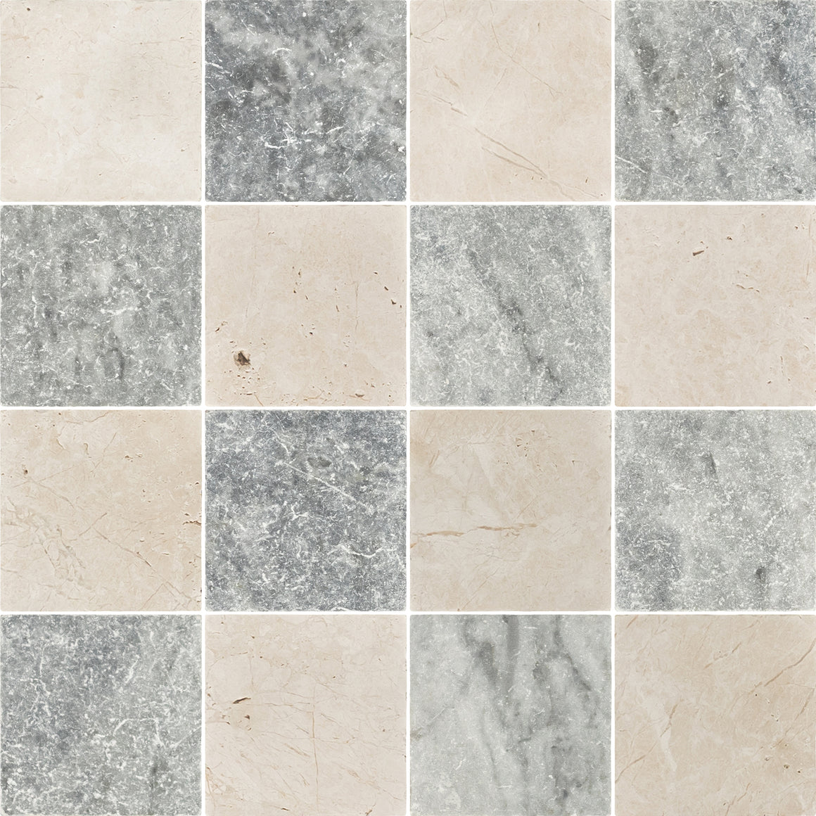 Bardiglio Nuvolato 4" x 4" Tumbled & Alba Nova 4" x 4" Tumbled Checkerboard Board