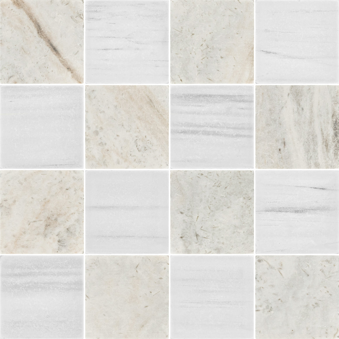 Bianco Oro 4" x 4" Tumbled & Dolomite 4" x 4" Tumbled Checkerboard Board
