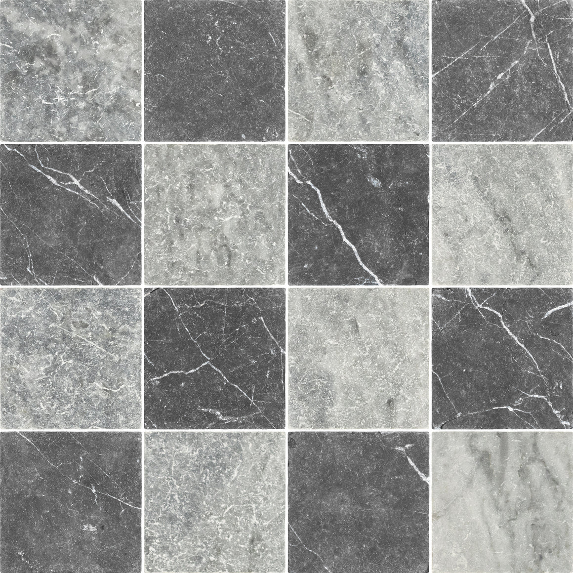 Black Marble 4" x 4" Tumbled & Bardiglio Nuvolato 4" x 4" Tumbled Checkerboard Board