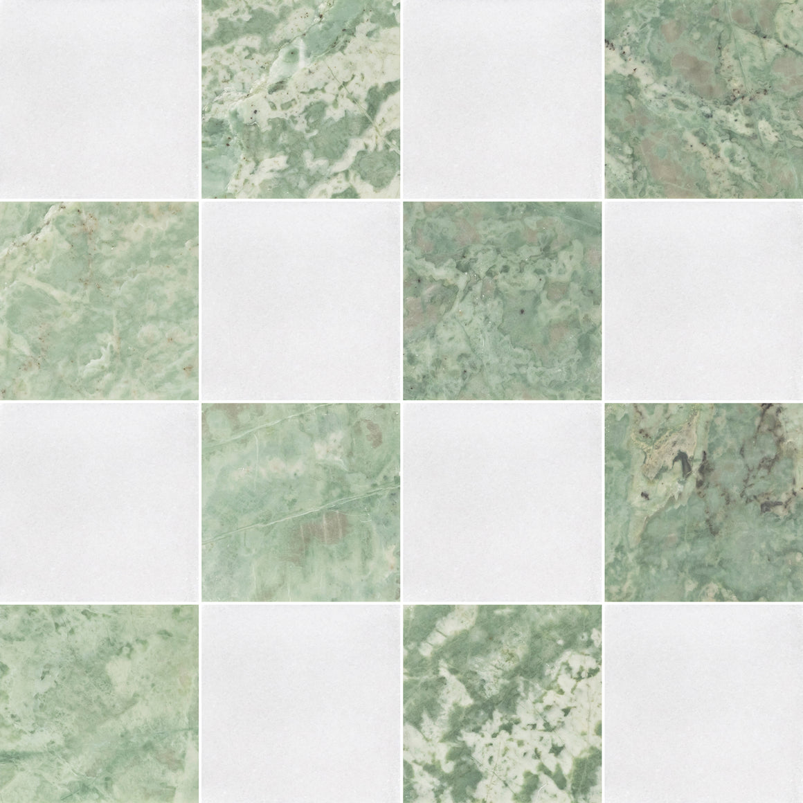White Thassos 4" x 4" Honed & Emerald Green 4" x 4" Honed Checkerboard Board