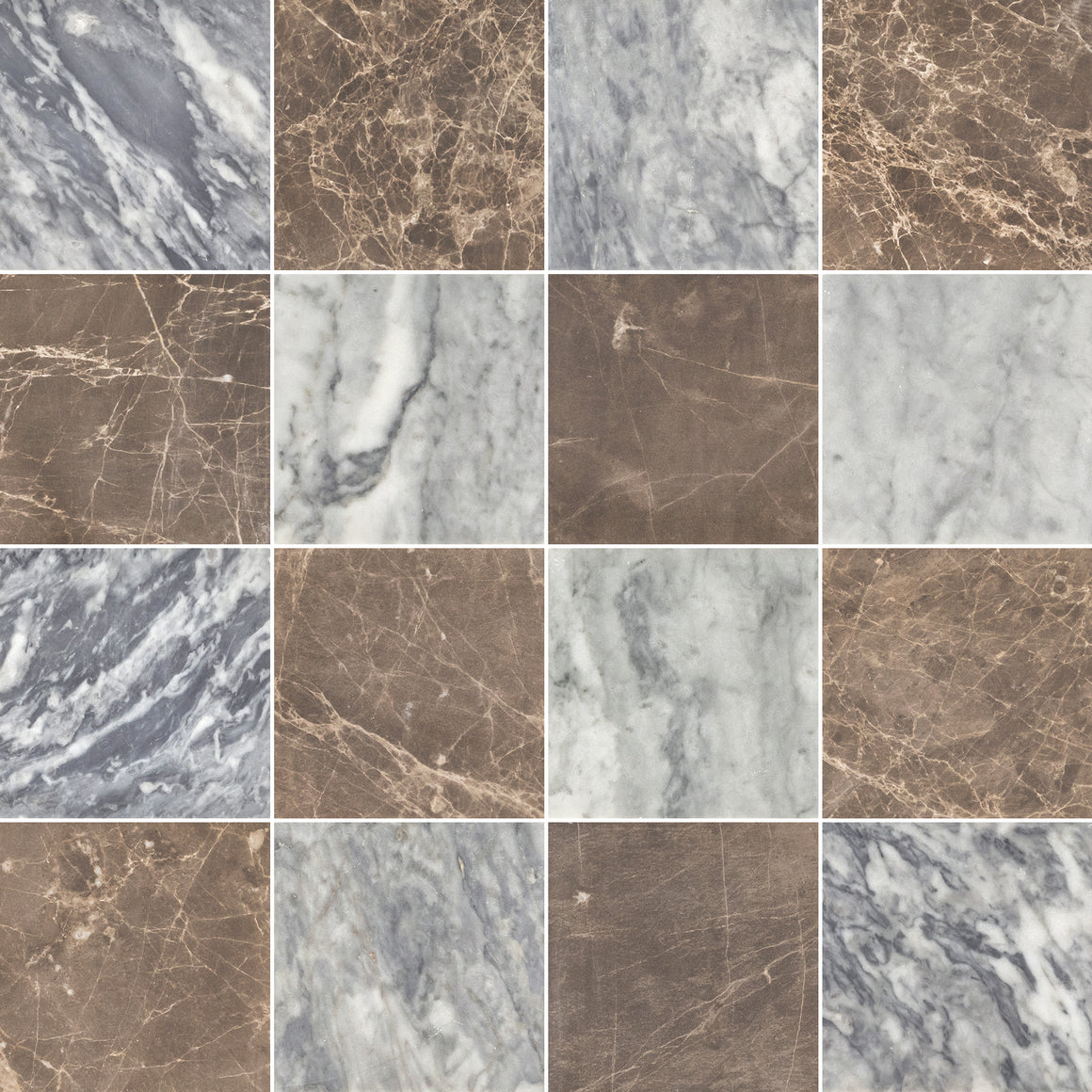 Bardiglio Nuvolato 4" x 4" Honed & Espresso 4" x 4" Honed Checkerboard Board