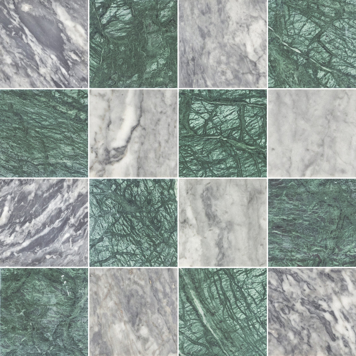 Bardiglio Nuvolato 4" x 4" Honed & Notte Verde 4" x 4" Honed Checkerboard Board