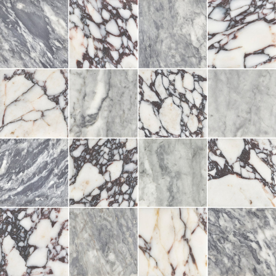 Bardiglio Nuvolato 4" x 4" Honed & Bianco Violetta 4" x 4" Honed Checkerboard Board