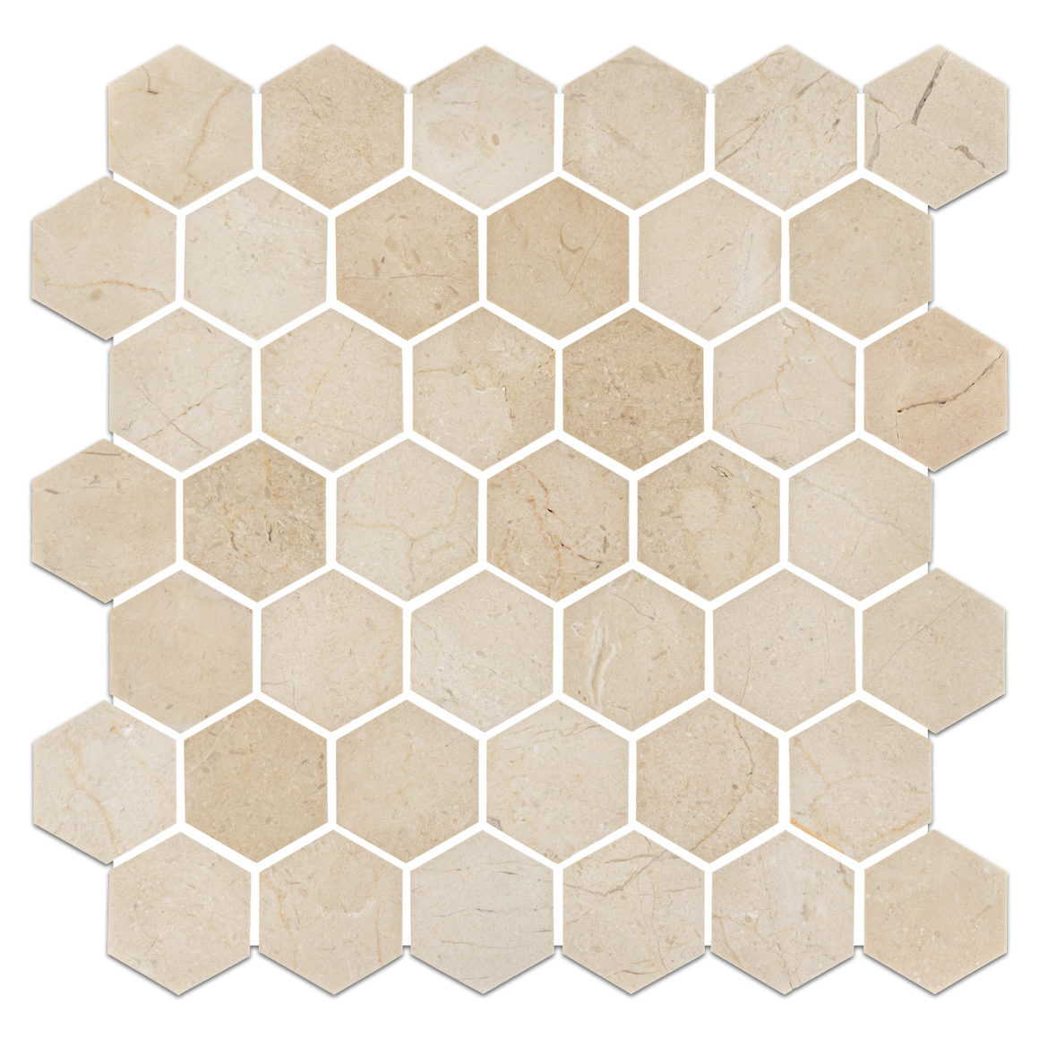 AM8215P - Crema Marfil 2" Hexagon Mosaic Polished