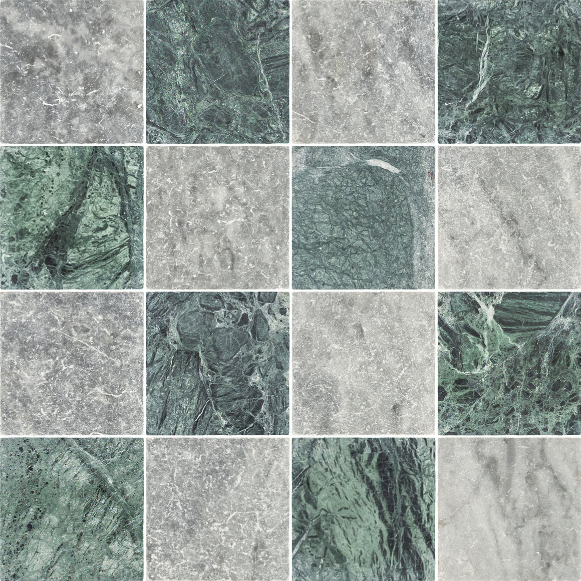 Bardiglio Nuvolato 4" x 4" Tumbled & Notte Verde 4" x 4" Tumbled Checkerboard Board