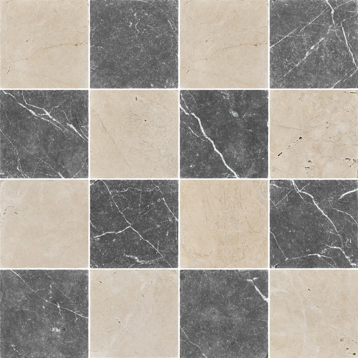 Black Marble 4" x 4" Tumbled & Vanilla Royale 4" x 4" Tumbled Checkerboard Board