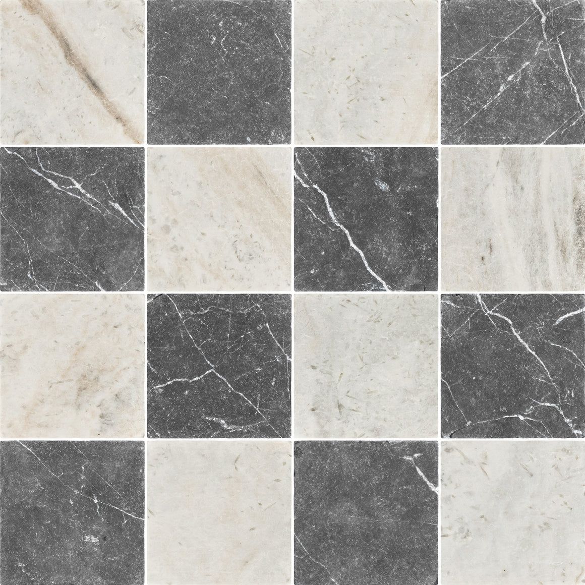 Black Marble 4" x 4" Tumbled & Bianco Oro 4" x 4" Tumbled Checkerboard Board