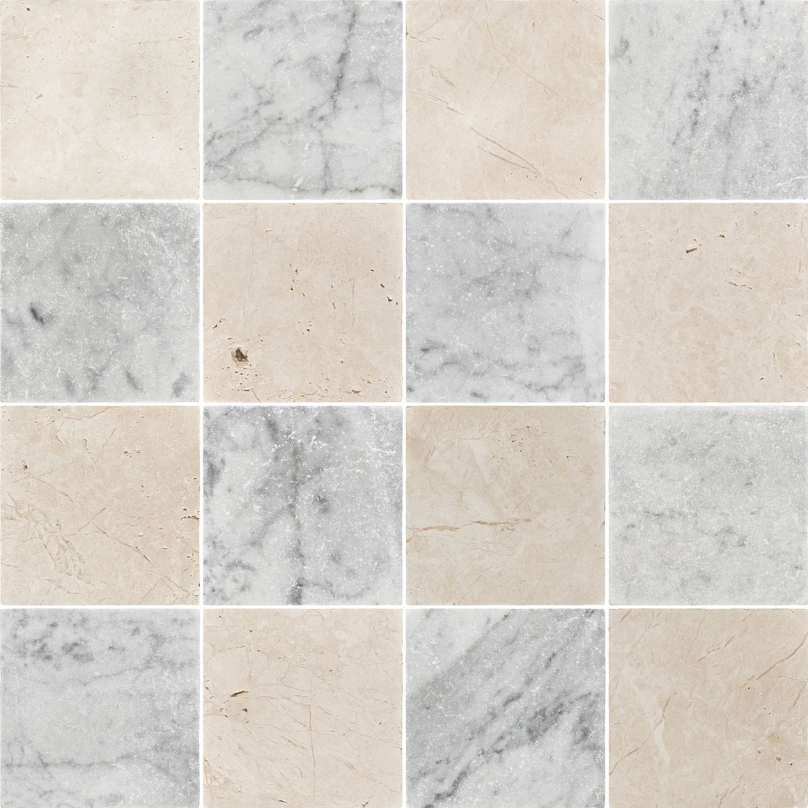 Bianco Carrara 4" x 4" Tumbled & Alba Nova 4" x 4" Tumbled Checkerboard Board